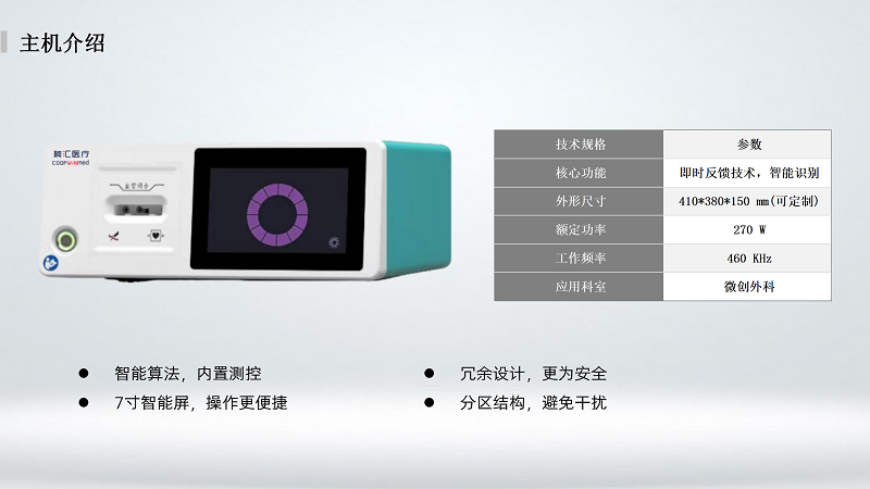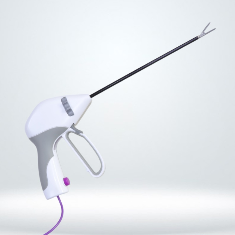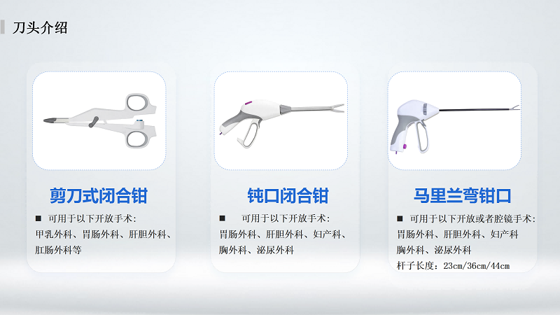 大血管闭合手术系统是利用高频电能作用于组织,使组织脱水、蛋白质变性,在组织闭合器钳口的压力作用下,蛋白质陪合在一起,形成永久的闭合带,再配合器械内的冷刀片实现组织切割。可用于闭合直径不大于7mm的动、静脉血管和组织束。